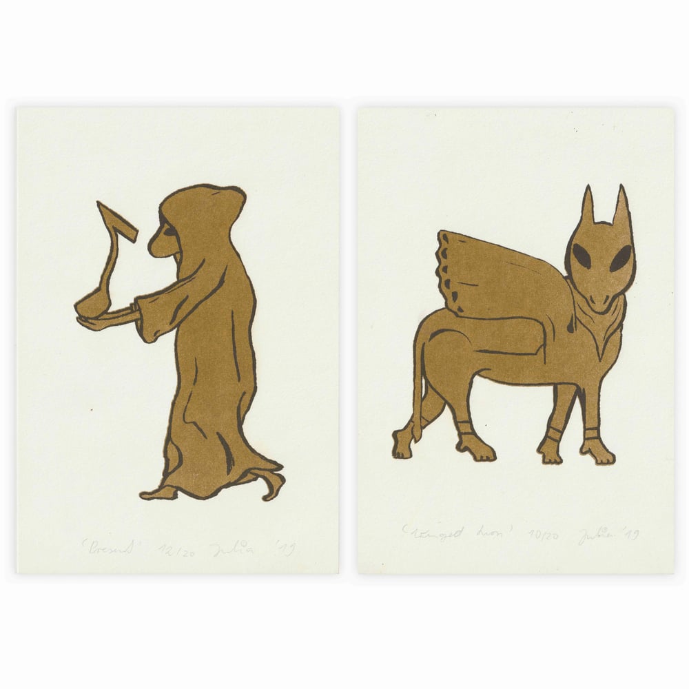 Two-Print-Set 'Winged Lion' and 'Present' 15 x 22 cm
